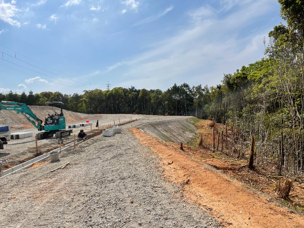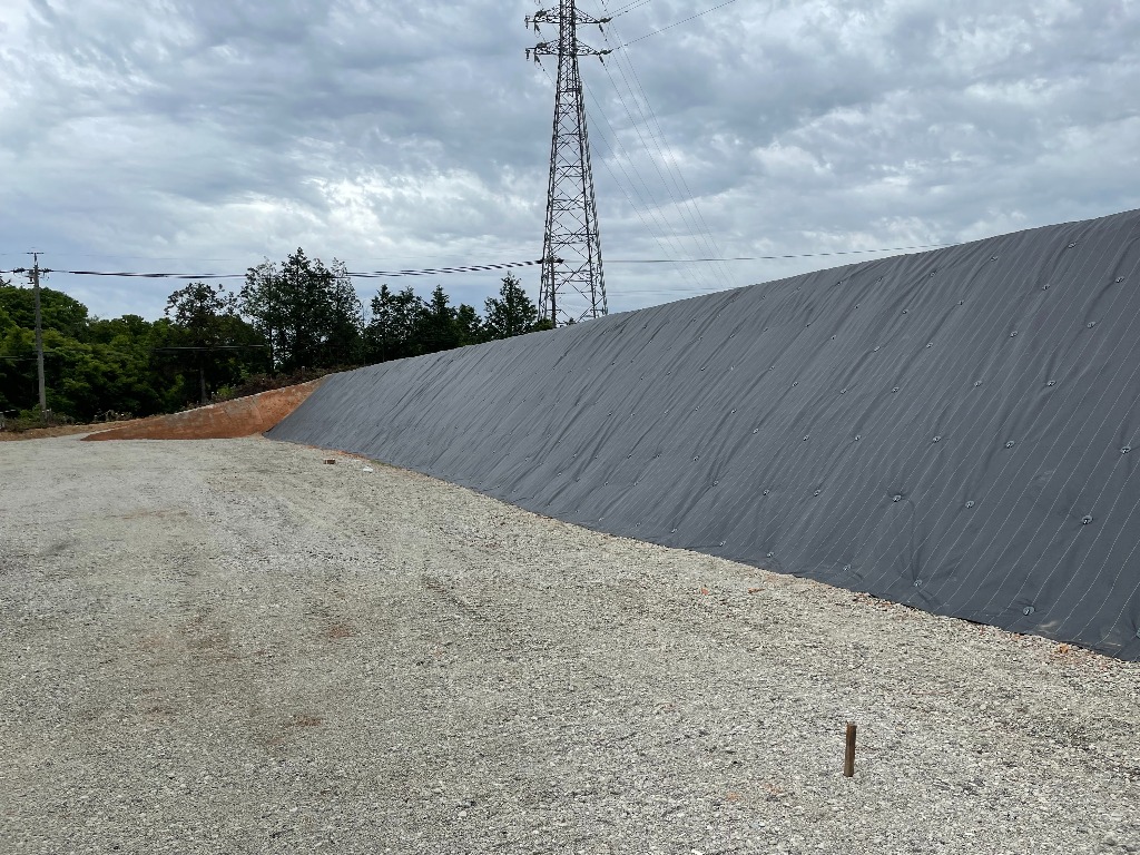 今回法面へ防草シートの貼り付けを行いました。